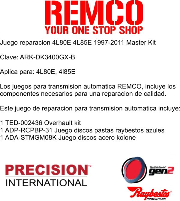 Los juegos para transmision automatica REMCO, incluye los componentes necesarios para una reparacion de calidad.