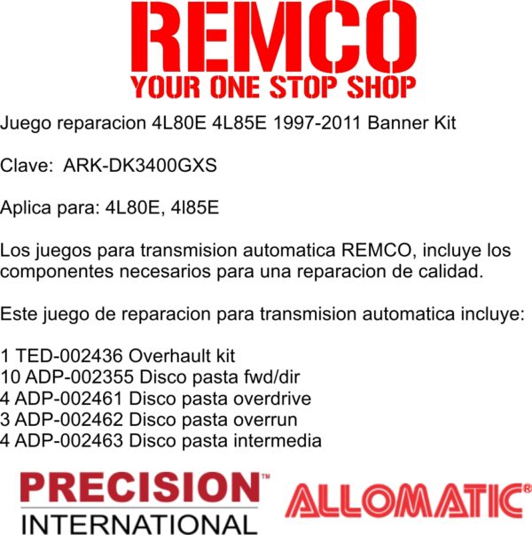 Los juegos para transmision automatica REMCO, incluye los componentes necesarios para una reparacion de calidad.