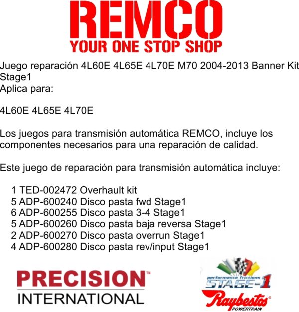 Los juegos para transmision automatica REMCO, incluye los componentes necesarios para una reparacion de calidad.