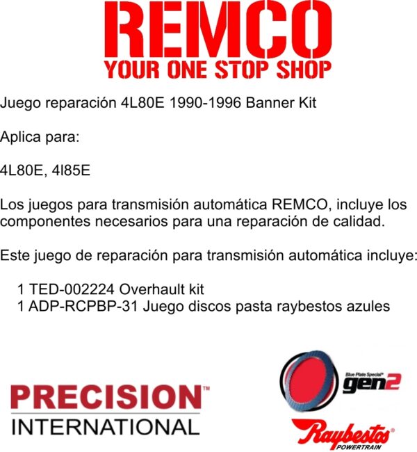 Los juegos para transmision automatica REMCO, incluye los componentes necesarios para una reparacion de calidad.
