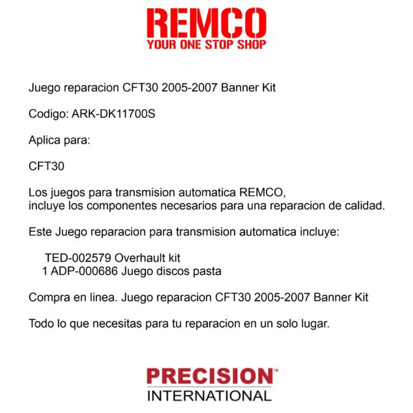 Los juegos para transmision automatica REMCO, incluye los componentes necesarios para una reparacion de calidad.