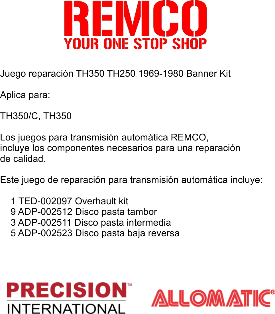 Compra en linea. Juego reparacion TH350 TH250 1969-1980 Banner Kit