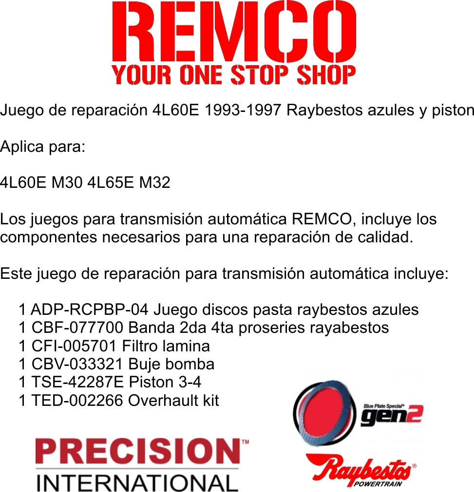 Compra en linea.Juego reparacion 4L60E 1993-1997 Raybestos azules y piston