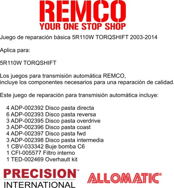 Juego reparacion basica 5R110W TORQSHIFT 2003-2004