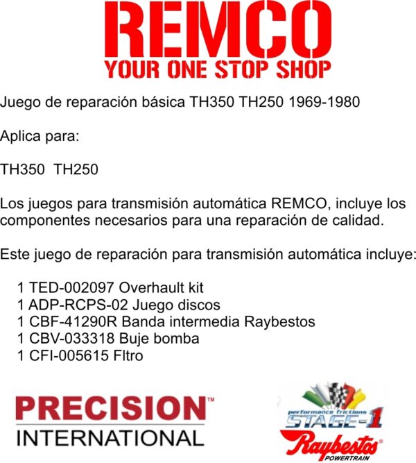 Los juegos para transmision automatica REMCO, incluye los componentes necesarios para una reparacion de calidad.