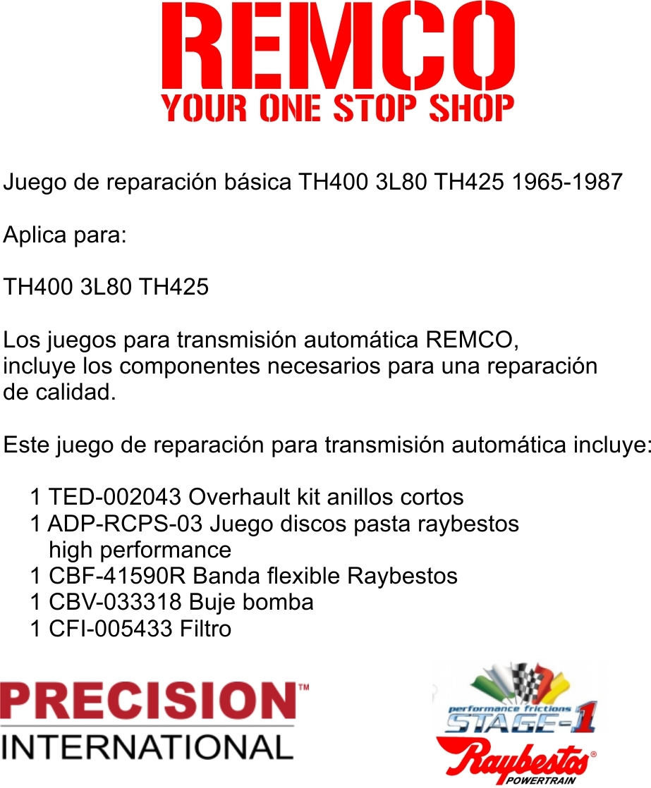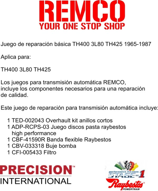 Juego reparacion basica TH400 3L80 TH425 1965-1987