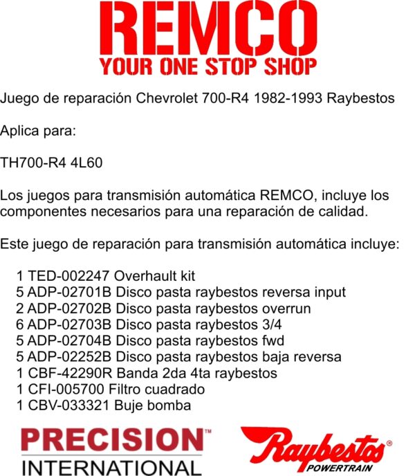 Juego reparacion Chevrolet 700-R4 1982-1993 Raybestos