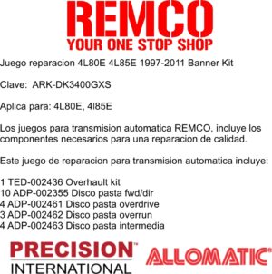 Los juegos para transmision automatica REMCO, incluye los componentes necesarios para una reparacion de calidad.