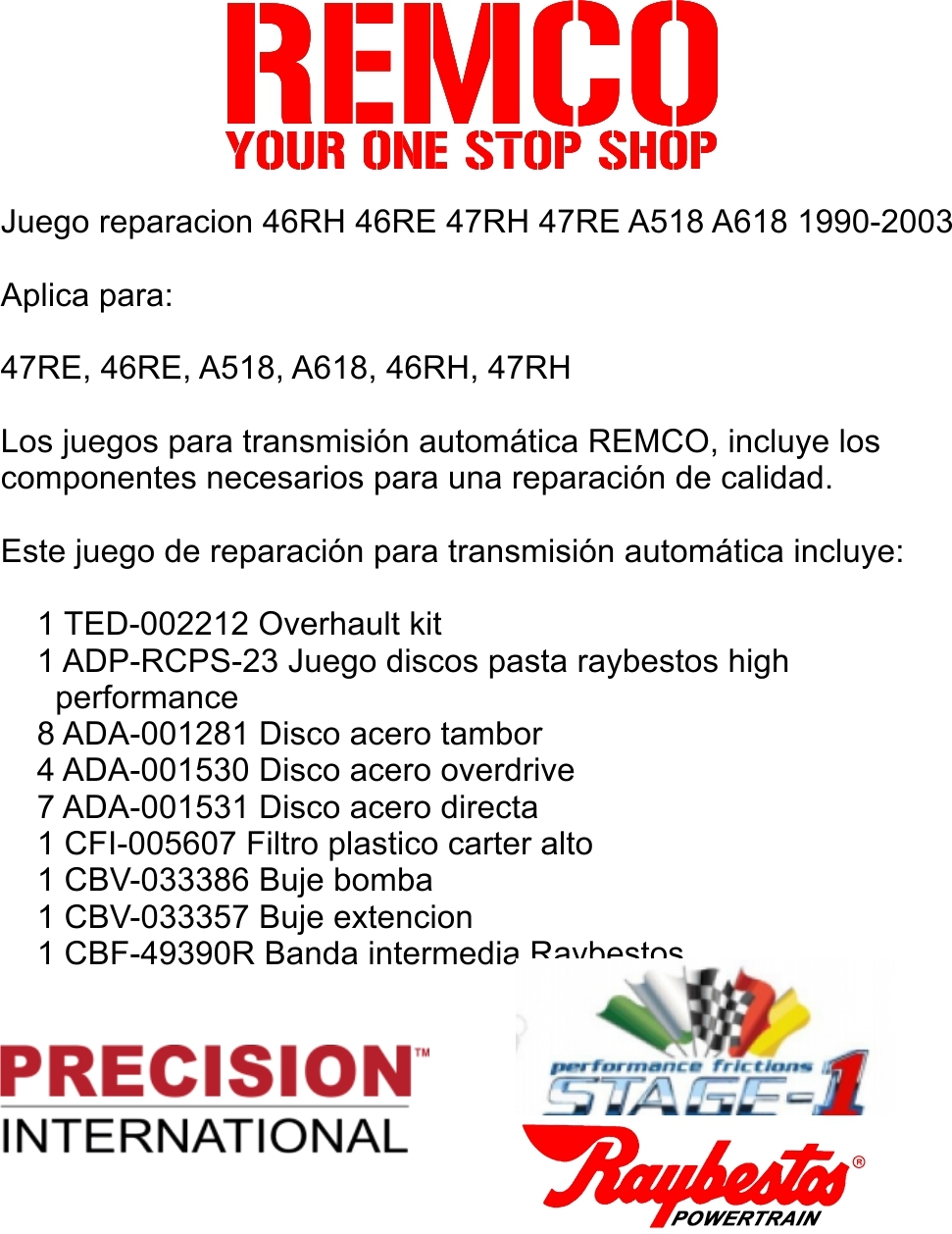 Juego reparacion 46RH 46RE 47RH 47RE A518 A618 1990-2003 Raybestos Stage1