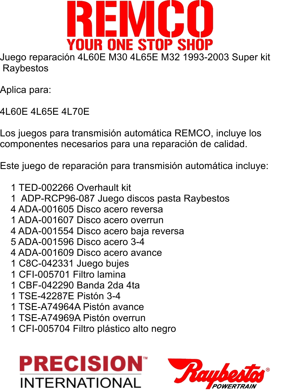Juego reparacion 4L60E M30 4L65E M32 1993-2003 Super kit Raybestos