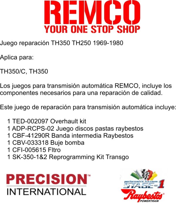 Los juegos para transmision automatica REMCO, incluye los componentes necesarios para una reparacion de calidad.