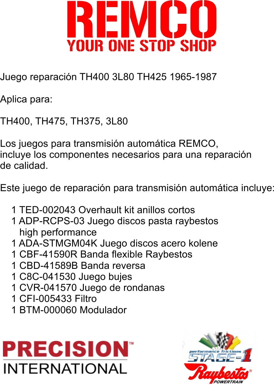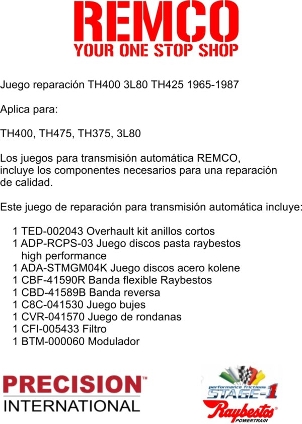 Juego reparacion TH400 3L80 TH425 1965-1987