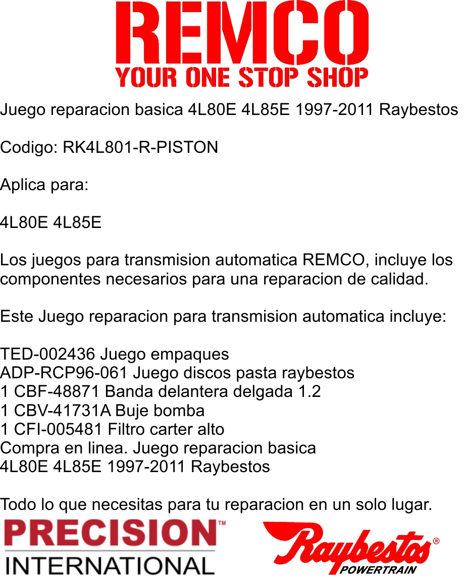 Compra en linea. Juego reparacion basica 4L80E 4L85E 1997-2011 Raybestos