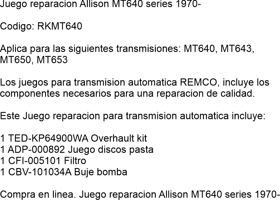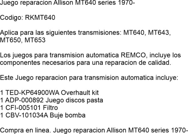 Compra en linea. Juego reparacion Allison MT640 series 1970-