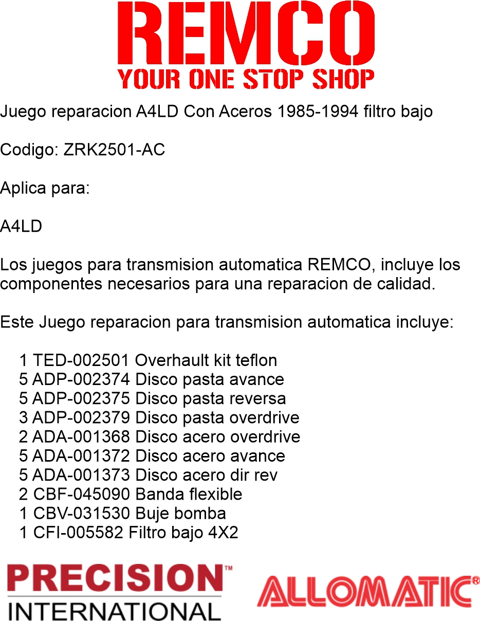Los juegos para transmision automatica REMCO, incluye los componentes necesarios para una reparacion de calidad.