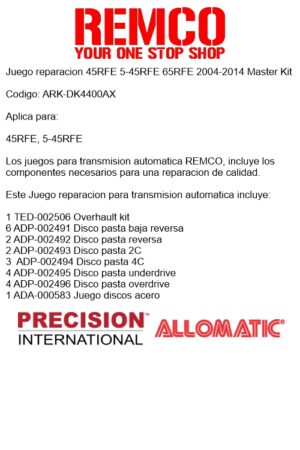 Refacciones para transmisiones automaticas y dirección hidraulica