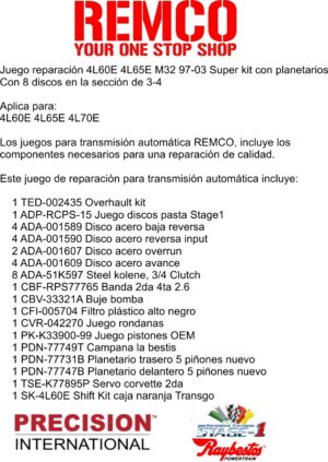 Juego reparacion 4L60E 4L65E M32 97-03 Super master Stage1 con campana