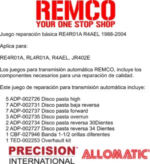 Refacciones para transmisiones automaticas y dirección hidraulica